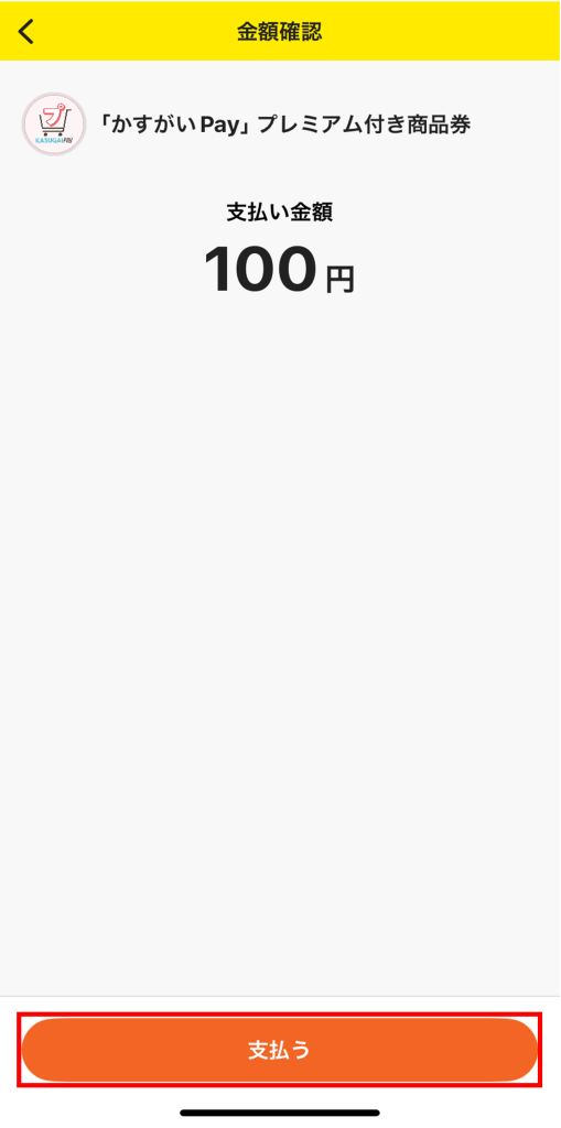 ⑤支払い金額を確認の上、レジの方へ金額に相違がないか確認をしていただいてください。相違なければ「支払う」をタップしてください。